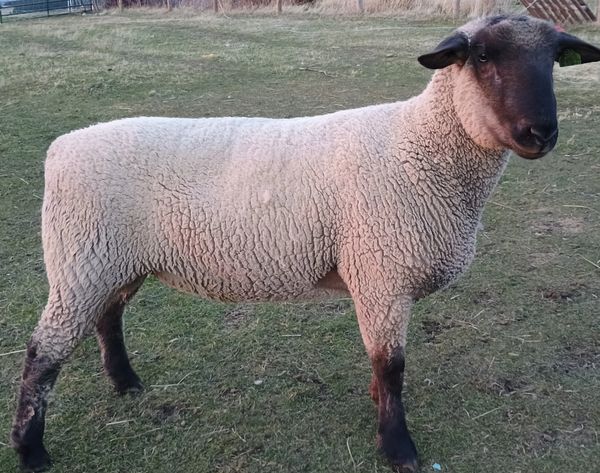 Churchill is a registered Texel ram bred by Ramble Farm Texels out of Terrebonne, OR. He is our cleanup ram that will mostly produce butcher lambs for local sale. He brings the best of a Texel cross to the flock, producing lambs with heavy bone, and lots of lean, heavy muscle, resulting in good yields of tender, mild tasting lamb at the butcher.